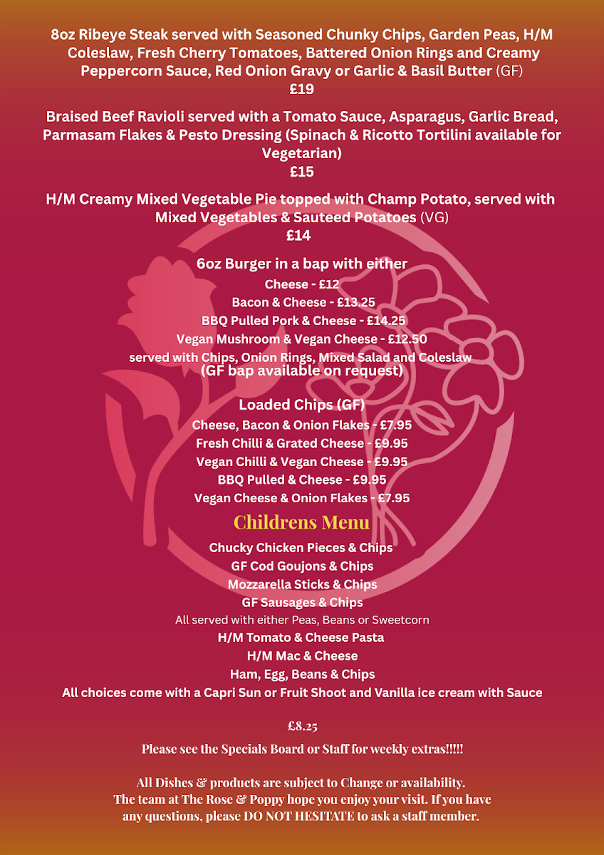 Welcome to The Rose and Poppy, a beloved café nestled in Fareham. The menu is a delightful fusion of flavors, emphasizing fresh ingredients and well-crafted dishes. Start your meal with refreshing salads like the Grilled Lemon Chicken Breast or the indulgent Smoked Salmon, all complemented by homemade dressings. For mains, the Grilled Cajun Chicken and Smoked Cheese-Stuffed Chicken are standout choices, offering a satisfying combination of proteins and aromatic seasonings.